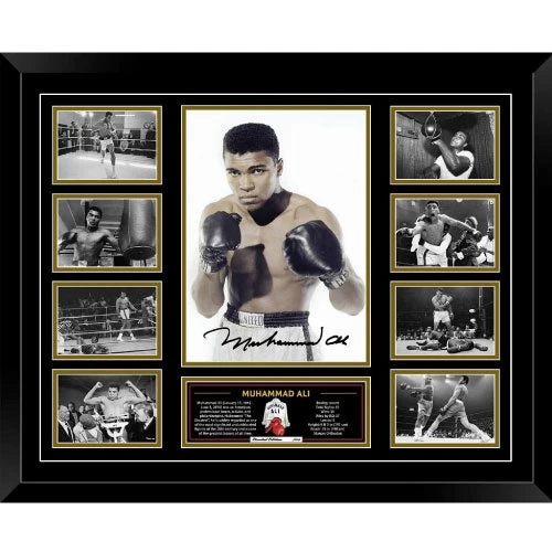 Buy it for yourself or it can be a wonderful gift. A high quality photographic collage of Muhammad Ali.Â